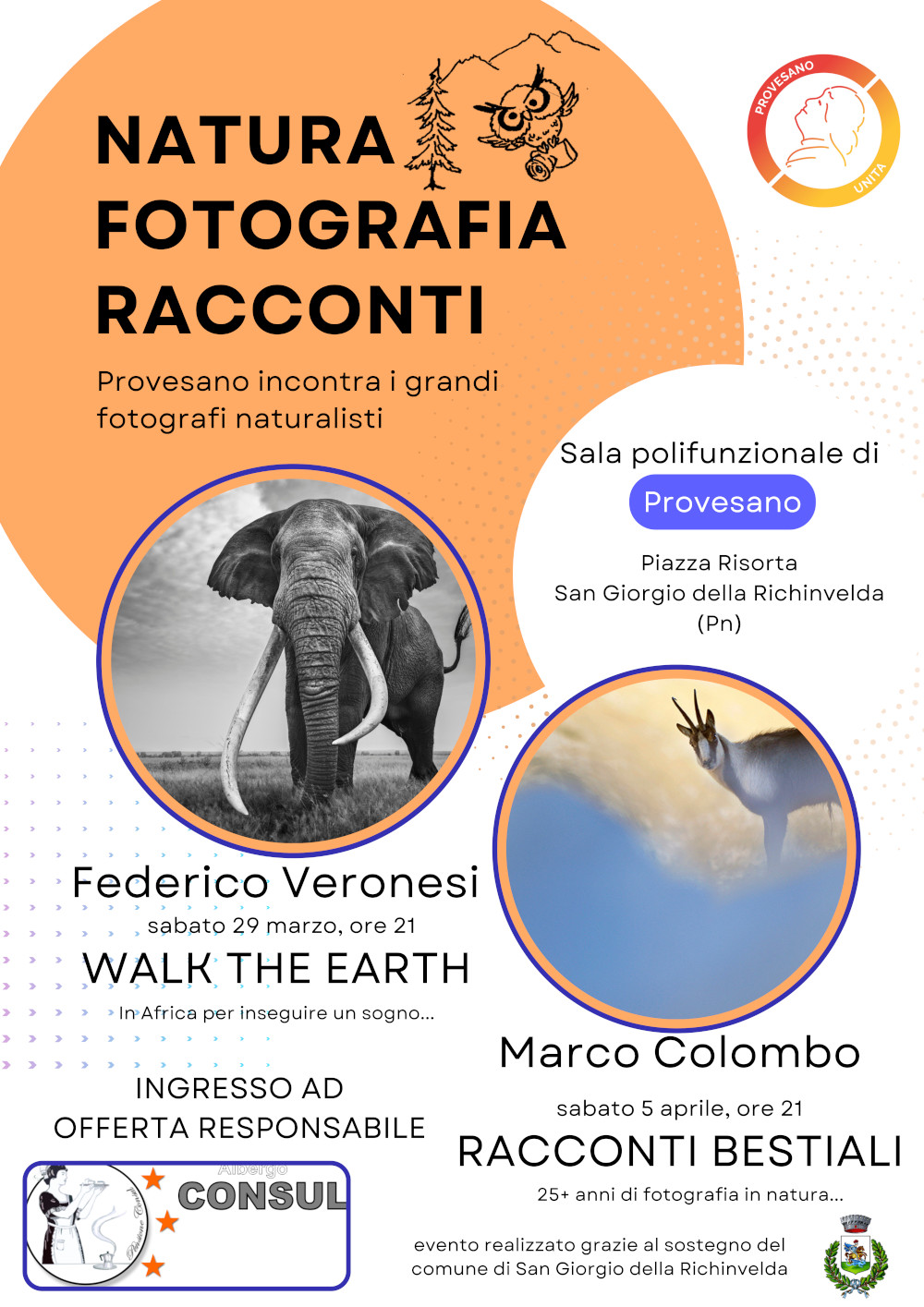 L'Associazione Provesano Unita, responsabile logistica della manifestazione e anima del nostro piccolo paese, ha sostenuto Stefano fin dalla prima serata dell'inverno del 2011 predisponendo la sala del centro polifunzionale e organizzando un apprezzato rinfresco finale.